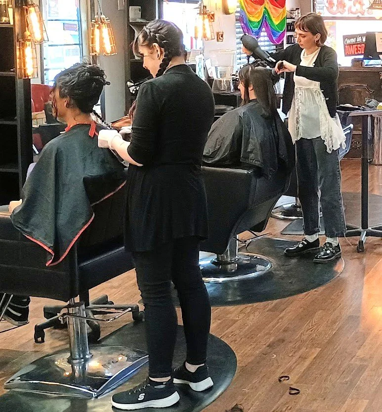 Donations: We provide transformational cuts for donations (standard rates apply), but we do not process the donation for you. Most organizations require 10–12" of virgin hair.